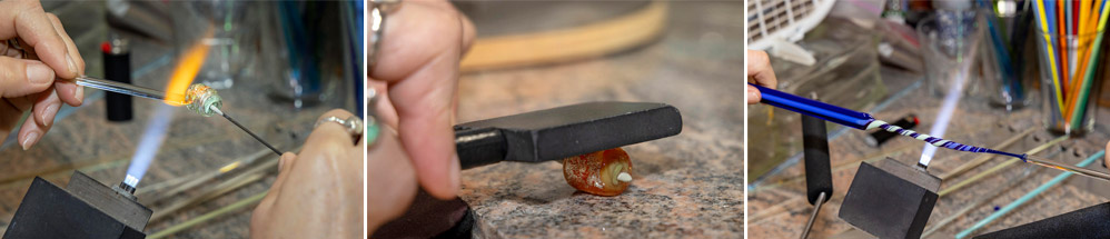 The art of glass bead making is thousands of years old, but the craft was reimagined in modern times in Venice, Italy about 500 years ago. They called it “lampworking”, as the means to melt the glass rods was using oil lamps. Today it is also known as flame working.
